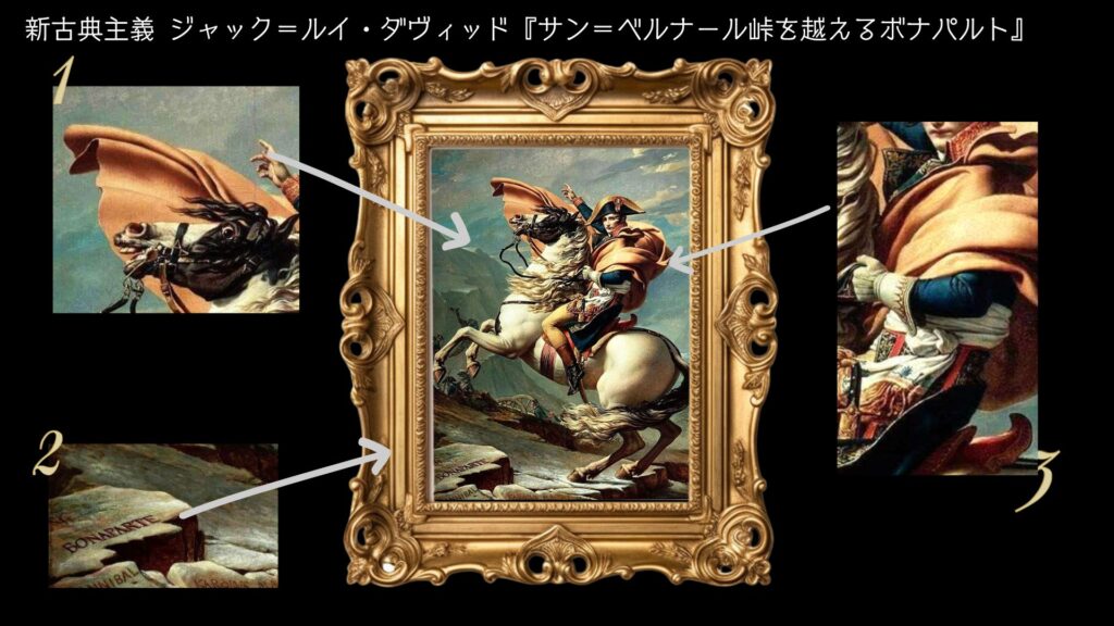 ダヴィッドはナポレオンを歴史的・英雄的な人物として描くために、